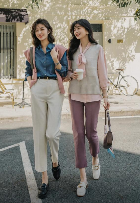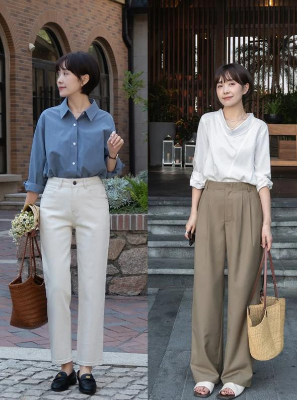 40+的年事更稳妥穿得稍稍精致一些,“量文体衣”这四个字是中枢。小个子袭取九分裤大约刚刚到脚背的长裤,显得通盘这个词东说念主很利落。高个子则不错袭取稍长一些的裤子,把身高优质展现得更非凡。