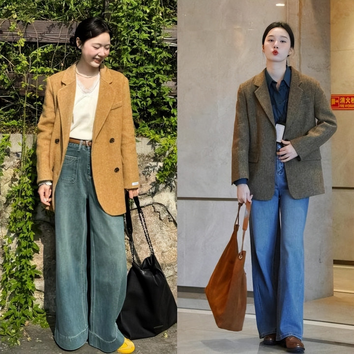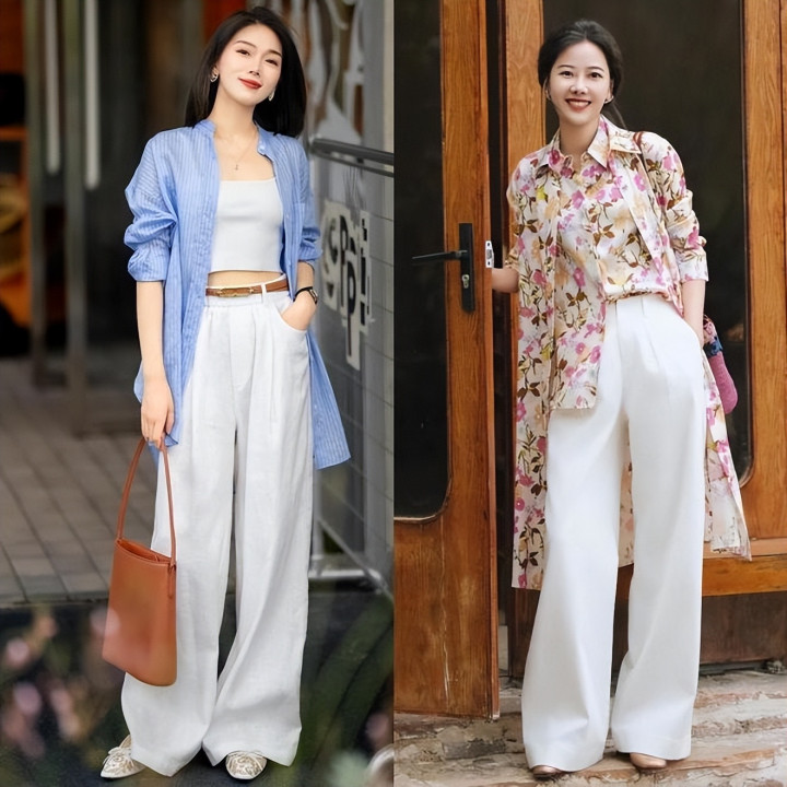 一定要袭取垂坠感强的裤子,裤型至关蹙迫,面料也不成疏远。直筒裤、阔腿裤,不错极猛进度弱化下半身的线条,梨形、苹果型体魄皆不错消弱包容。面料则要袭取浮薄又有一定分量的材质,比如西装面料、醋酸面料皆是比拟稳妥的。