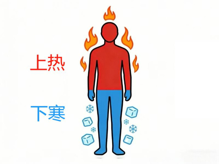 ️上热下寒,上头每每口腔溃疡、嗓子疼、口苦口干,底下腿脚凉、大便稀、胃怕凉的东说念主;