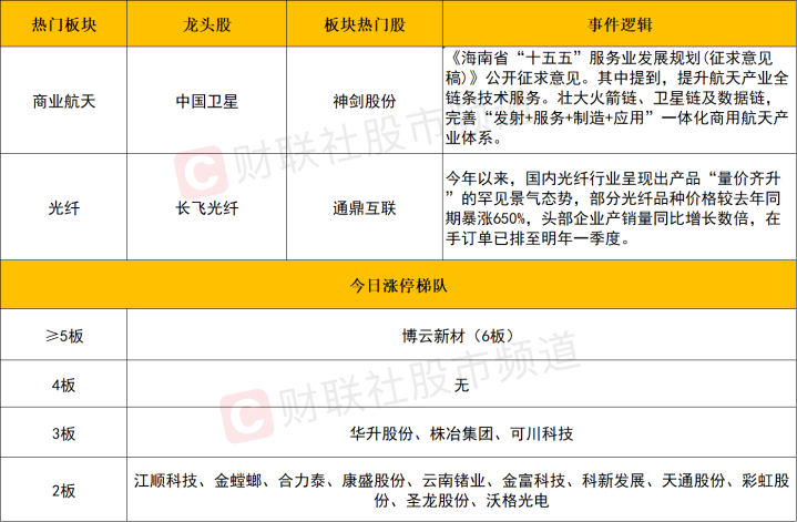 交易航天全线爆发,蜀说念装备、中国卫星、中国卫通、西部材料、中衡设想、神剑股份涨停。广联航空、天银机电、通光辉缆、乾照光电等个股涨幅居前。