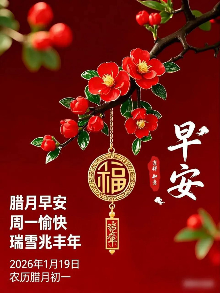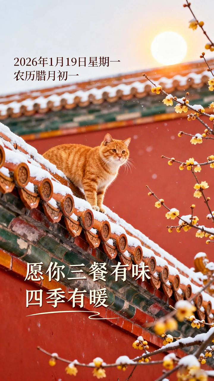 1月19日,星期一。今天是农历腊月的第一天,还有一个月就到春节了。耐得冬日严寒,终见春日似锦。愿您岁寒心暖,唾手安康。