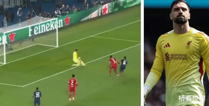 但利物浦门将连忙收缩射门角度,用双腿完成环节封堵,让利物浦在上半场闭幕前不再丢球。