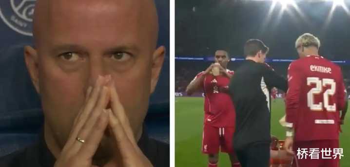 在开赛前片时,斯洛特被拍到危坐一旁,面孔紧绷。看起来堕入了深深的想索。